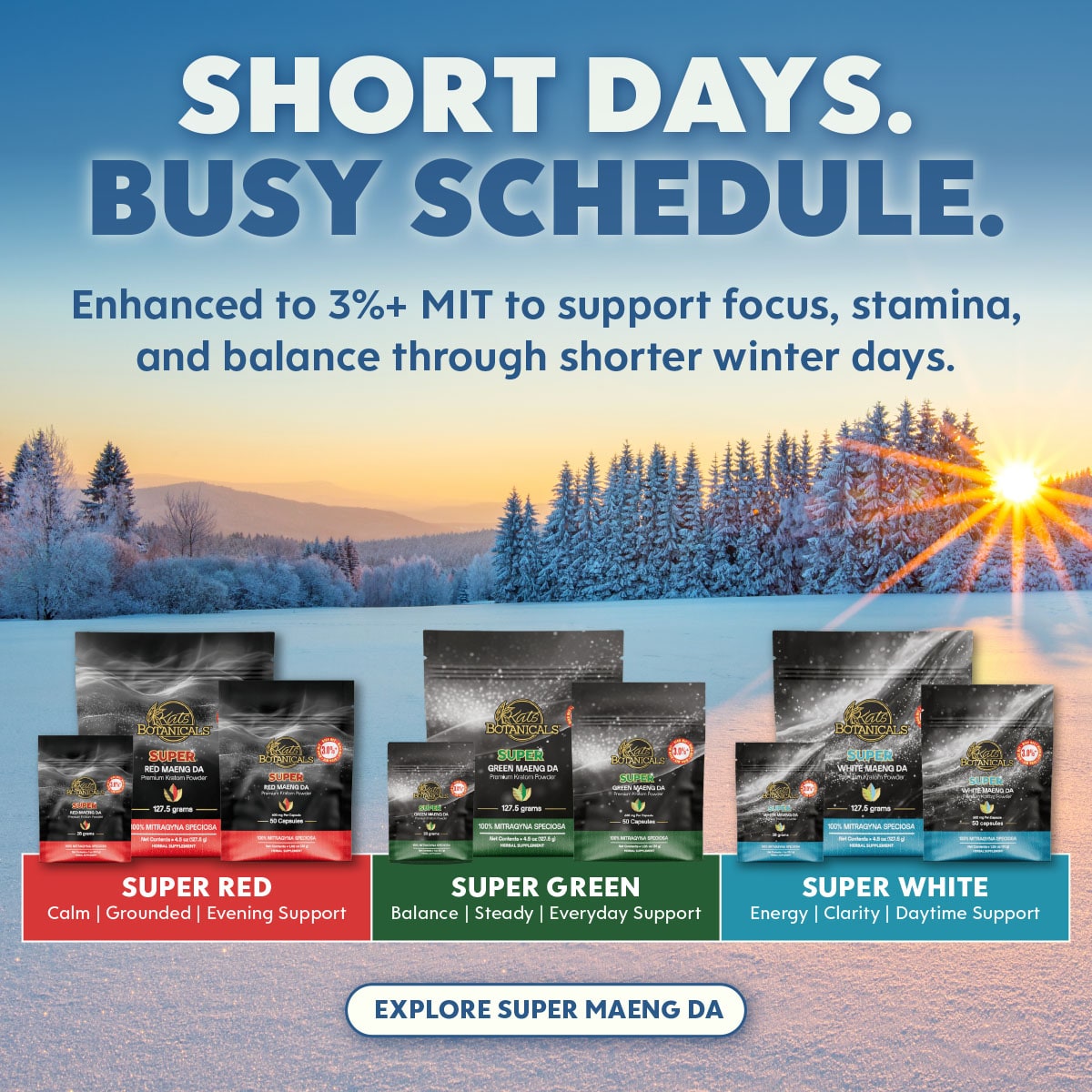 Enhanced to 3%+ MIT, Super Maeng Da delivers powerful energy, focus, balance, and body relief in one potent serving. For those who demand more, this blend fuels strength, stamina, and clarity all day long.