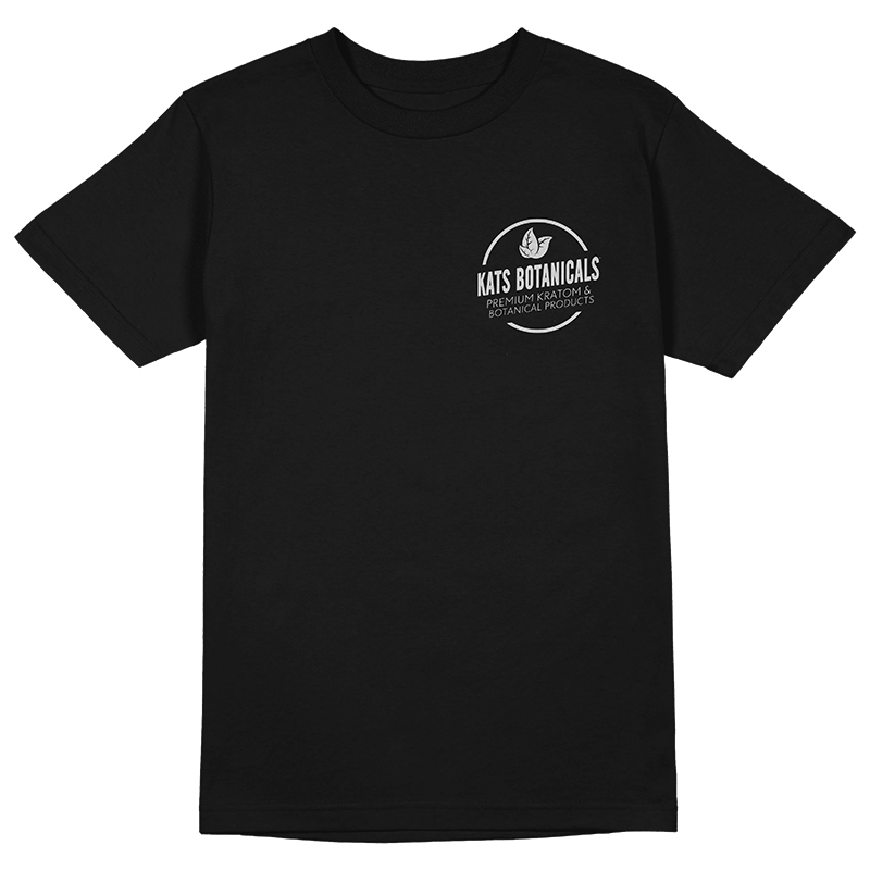The Classic design features a large, centered Kats Botanicals logo with a Kratom leaf cluster printed on the back. A smaller version of the logo is positioned on the wearer’s front left. This is a great choice for those who prefer a more retro, minimalist style. All Kats Botanicals t-shirts are made of 100% combed cotton and are preshrunk to minimize shrinkage. Select Small, Medium, Large, or Extra-large. T-shirts feature a ribbed crew neck, double-needle hems and are unisex with a relaxed, comfortable fit. Machine wash warm with similar colors.