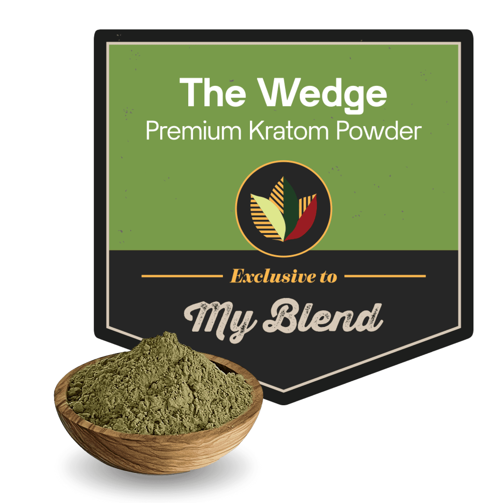 The Wedge is a Kratom powder blend made with 30% Green Vein, 50% White Vein, and 20% Red Vein Kratom, known as one of Kats Botanicals’ legacy blends.