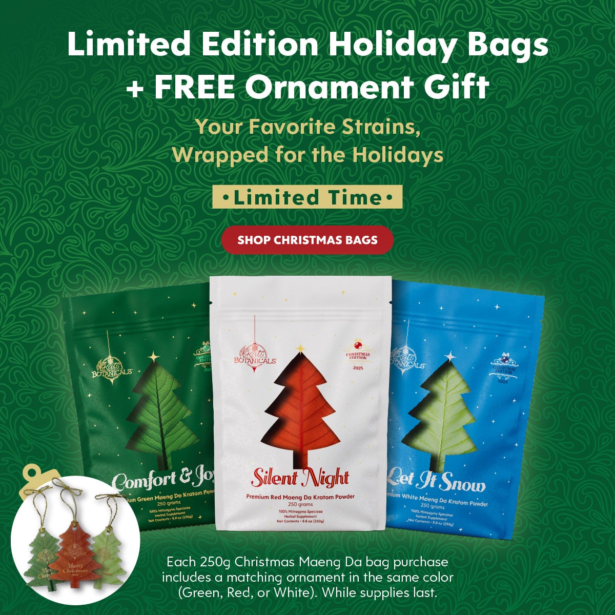 Limited Christmas Edition 250g Maeng Da Kratom Powder Bags